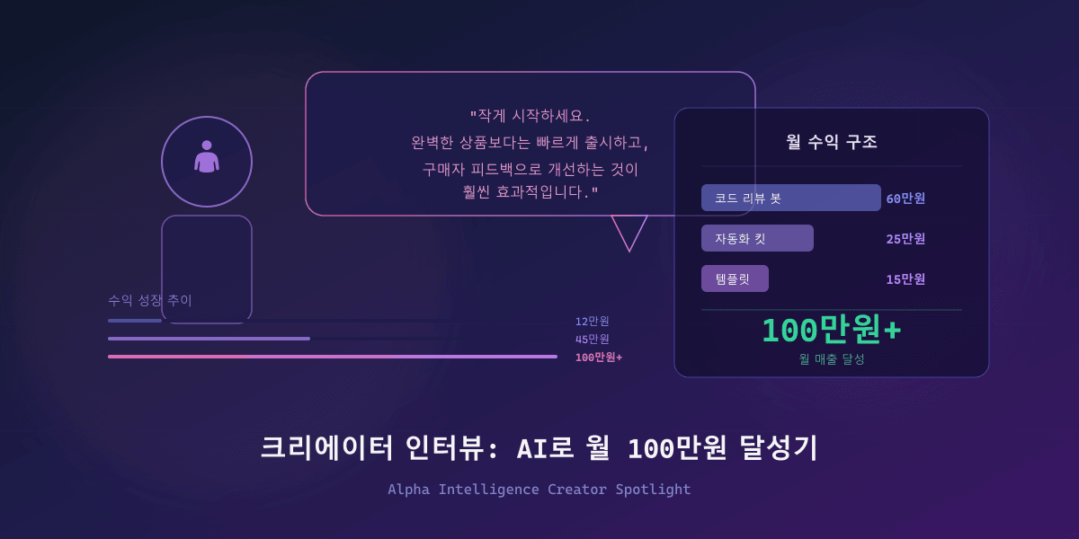 이번 달 인터뷰 주인공은 Alpha Intelligence에서 AI 코딩 상품을 판매하며 월 매출 100만원을 달성한 크리에이터입니다.